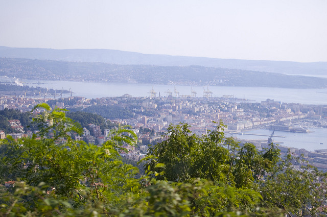 Carso triestino (Trieste) – una vista dalle montagne al mare